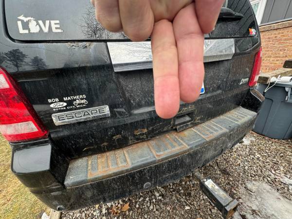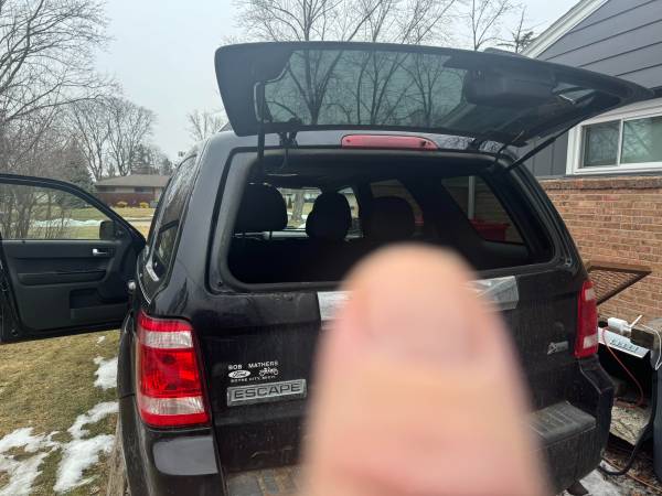 PRICE REDUCED ! Ford Escape just sits and does not get driven much. It has a nice interior with heated seats and about 165000 miles. It has new tires, new wipers, newer brakes and rotors, bearings and a recent oil change. Believe all functions still work as they should, heat, defrost, rear defrost, wipers, washers, turn signals, etc. Not sure if the AC is working. This Escape comes with an extra set of black rims - no tires. It does leak a little oil and has rust over the wheel wells and on the rear tailgate. The tail gate glass opens but I cannot get the tailgate itself to open. Also, the in car information display and tire pressure warning monitors do not work and we were told it needs to be "flashed" at the dealer. No trades - cash please. Contact us in SE Michigan. 2 four 8 six 7 seven - 1 zero eight 7