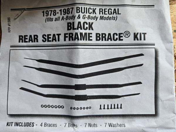 G-Body and sbc parts for sale. G-body rear seat brace kit, has scratches from vendor. new $120 78-88 Gauge bezel rings, new $40 SBC 8" Externally balanced harmonic balancer. Blue print. New $130...