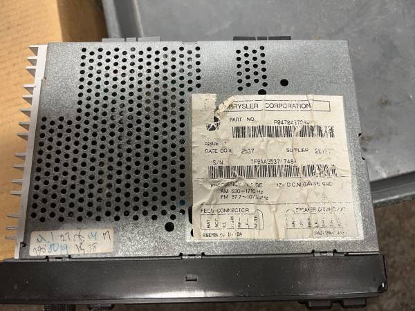 Old Chrysler Jeep Radio CD Player Late 1990s Cherokee Wrangler TJ XJ. Unsure of the condition of the radio. It came with a recent Jeep Cherokee I purchased, but was not connected. (I have my own OEM radio with cassette deck, hence no need for it.) Hate to throw it out when it could be a good radio for a Jeep enthusiast such as myself.