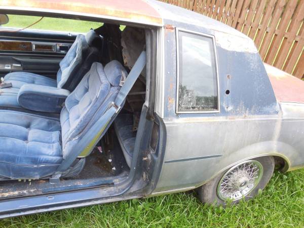 Just parted out the 1985 Regal in last few pics. What is being offered here is the complete interior including front 60/40 seat, rear seat, all interior panels and plastic as seen in the first photos except front door panels which have been sold. I have already sold the front header and RH fender but the rest is pretty much available and I am posting the parts as time allows. Car NOT included! Call if interested. Thanx