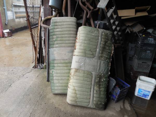 Just brought these seats back from NC where I partially dismantled a 1972 Cutlass S 2 door hardtop. These are nice solid cores but do need reupholstering. Buckets have been sold. 100 for rear seat. Have full set of wheel opening moldings, rocker moldings, windshield trim set, roof cut, 3 core radiator, blue dash, and other parts as well to sell. Call if interested. Thanx