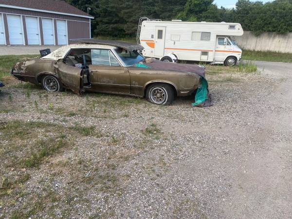 Selling all or parts off my 72 Cutlass 4dr SL barn find…350 Rocket engine and trans 90k miles you can hear and see run 1,500 …full set of 14” ralley rims with beauty rings 500.00… rear bumper 300.00…Am-Fm Deluxe radio 300.00 …please call or text me before 9pm the car was driven back from Nebraska years ago and has sat ever since!