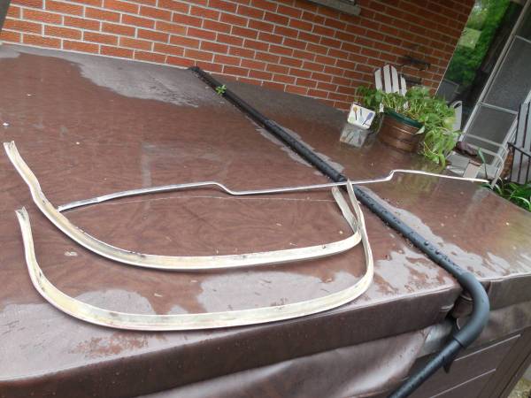 Pulled these off a 1970 Elcamino in NC a couple years ago and just stumbled onto them. Don't want to ship them so listing here instead of E-bay. This is the right and left front wheelhouse moldings off the car and the back of hood molding for a cowl hood. They are as pulled and are aluminum..................not stainless. Would need to be re-anodized for show or would look nice with a good polishing. The hood molding has a little bend that can be seen in the close-up pic but otherwise, they are nice and straight. Call if interested. Thanx