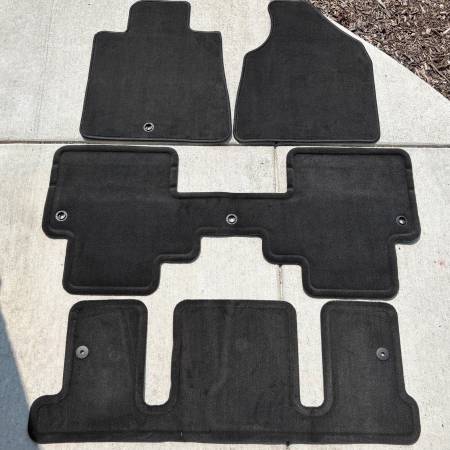 NEW 2012 GMC Acadia 4-piece floor mat set (two front, one second row, one third row). Dark Gray/Charcoal color.