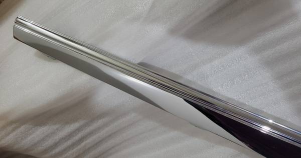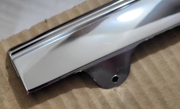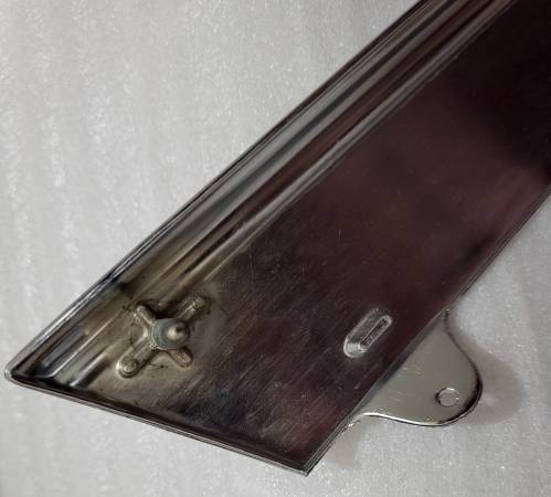Molding is in beautiful condition, as pictures show. Unthreaded mounting studs verify it has never been installed. Still-in-the-box ensures minimal shelf wear from years of storage. See pictures, and ask questions. Notice that the box is dated from 1970!