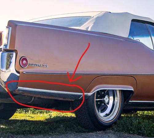NOS still-in-the-box rocker molding for RH rear quarter panel of 69-70 Buick Electra. GM p/n 8700965, and casting number 9720456. This is a chrome die-cast molding, not stainless steel. Fits all models of 69-70 Electra, including 2- and 4-door, and convertible.