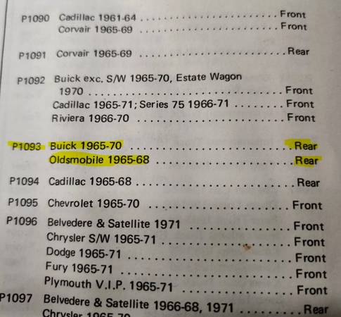 • 65-70 full-size Buicks (LeSabre, Wildcat, Electra), except Riviera and Estate Wagon