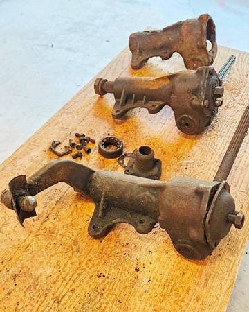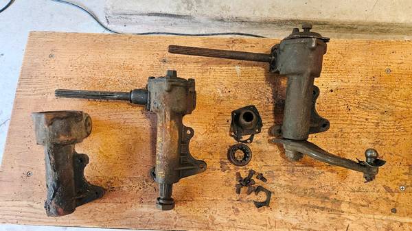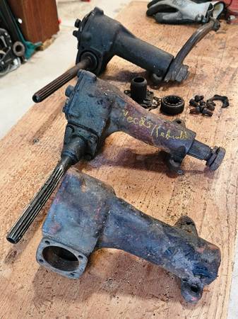 Here are two complete manual steering gears plus one additional housing for 1955, 1956 and 1957 Ford Thunderbird models. May fit other 1950s Fords as well. These are in need of rebuilding so are sold as is for parts or repair. One has the original pitman arm attached which is worth $75 alone. Just $100 takes everything!