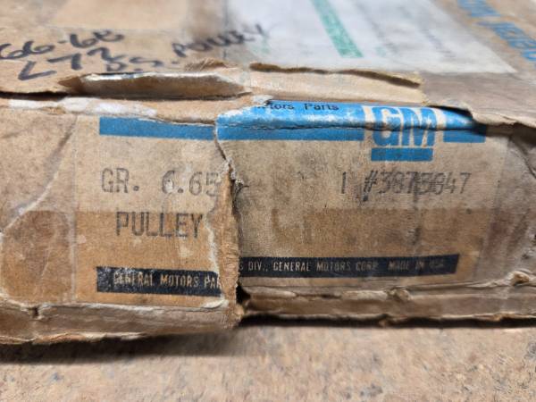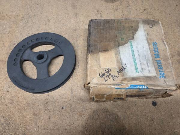 For Sale: L78/L72 Deep Grove Power Steering Pulley, part number 3873847. Fits 1965, 1966, 1967, 1968, 1969, Chevrolet, Chevelle and Camaro with high horsepower engines. Shipping is extra if you are not in the Detroit area. Payment by check or Money Order only. No PayPal or other electronic means. Asking $600