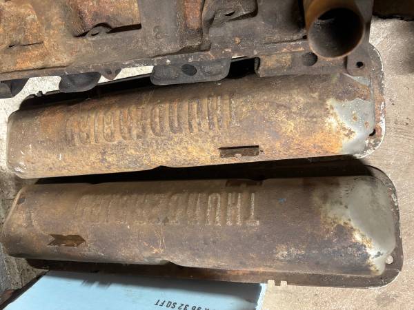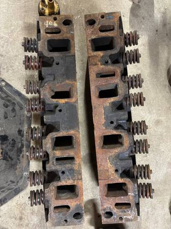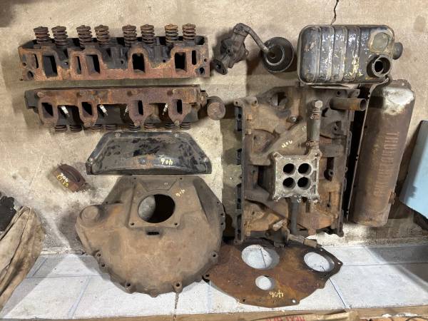 406 Ford heads that appear to have all the original valves, and all the exhaust port bolt holes are intact, 4barrel intake manifold with radiator expansion tank and factory pvc valve and carb spacer, Thunderbird valve covers, bell housing for manual trans with block plate and inspection cover, heat riser and oil pump with pickup. Asking $1200 for all package deal. Call or text anytime, NO E-MAIL!!! Thank you, Nine8nine, 3one zero, 15zero9