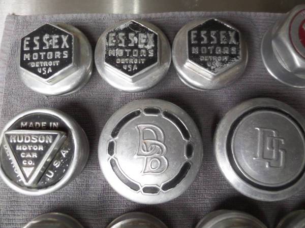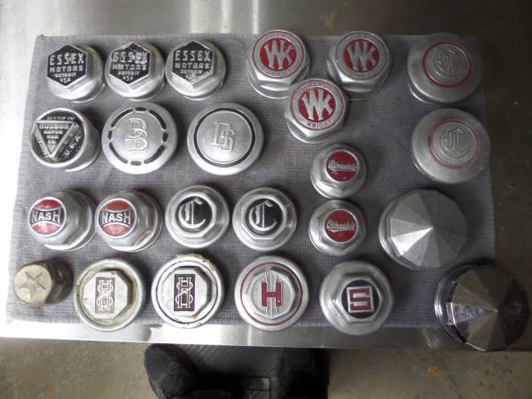 1920's 1930's real deal hub caps. Nash, Hudson, Essex, Willys, Oldsmobile, Hupmobile, Studebaker, Desoto. Call me for a price if you see one you like. I'll sell the whole collection for $400. The Dodge Brothers hub cap has been sold. NO TEXTING. CAll Grant 248-3six3-3nine54