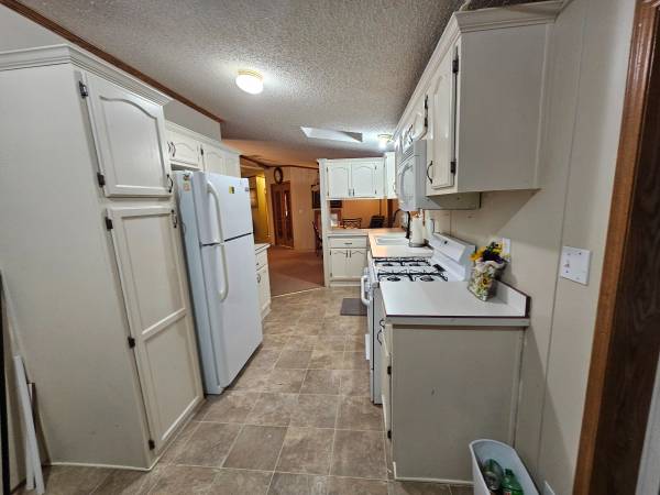 In the kitchen you will find a 2 to3 person snack or breakfast bar, built-in microwave, pantry tower with 3 slide outs for easy access, skylight, also an eat in area (besides the dining room).