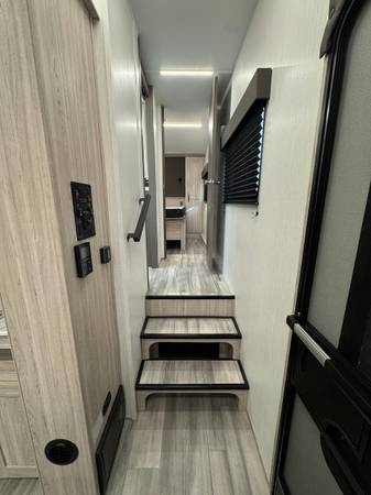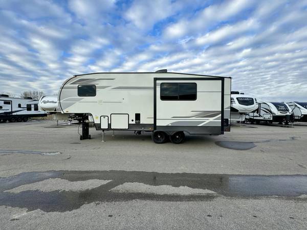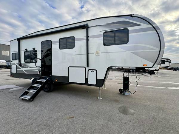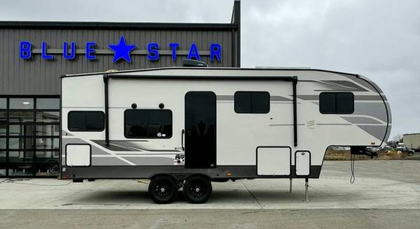 The Used 2024 Essence E-25RK Fifth Wheel brings lightweight luxury and practical design together for travelers who want modern comfort and efficiency. As a Certified Used RV from Blue Star RV, it’s fully inspected, detailed, and delivered with no hidden fees or surprises.