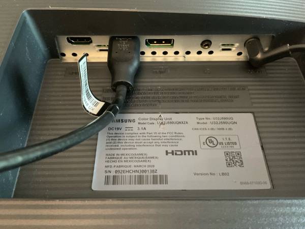 Samsung U32J590 32” Monitor. Used a couple months. Screen is perfect. No dead pixels, no stuck pixels. Couple scratches on bezel as pictured. Screen is perfect. Comes with original box....