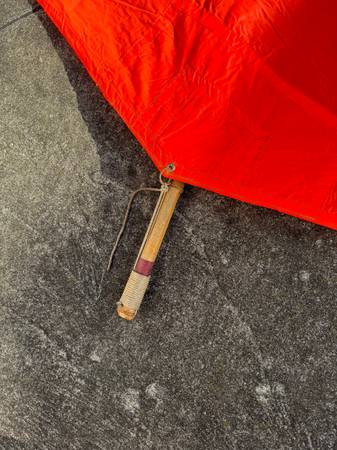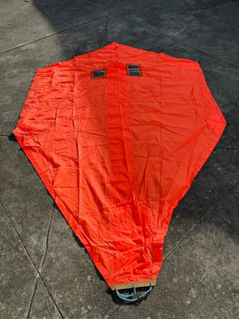 1. Orange nylon sail complete with poles 10 feet long x 5'-6" wide