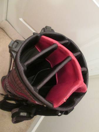 Women's golf stand bag by Ogio. Walnut Creek Country Club member bag. Light weight, yet strong. Large opening. Zippers works perfectly. Cover included. Experience what's like to be in a country club...