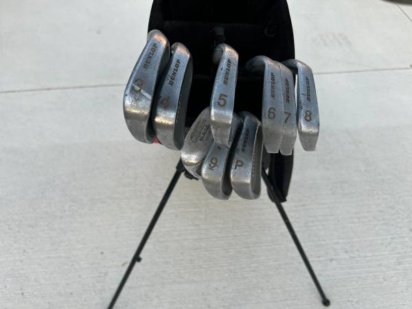 Dunlop Invicta golf clubs. Includes 1, 3, 5 wood and 3-9 + pitching wedge irons. Also includes ProSelect self-standing golf bag.