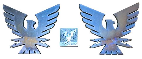 Selling a pair of used 5-3/4" x 6-1/2" (HxW) Formula Thunderbird boat emblems, as well as a 2" x 2" Thunderbird badge. In good shape, need new adhesive backing. Asking $50 for the set.