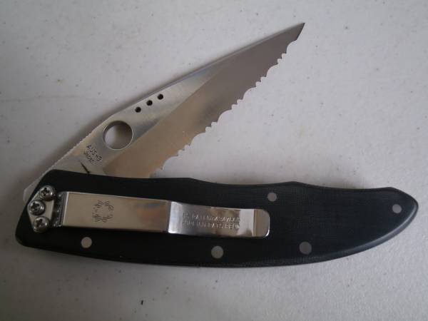 VINTAGE SPYDERCO HOWARD VIELE KNIFE #C42S NEW OLD STOCK, ULTRA RARE, 1997 AUS-6 S.S., 3 3/8" SERRATED BLADE JAPAN LINER LOCK MICARTA SCALES ORIGINAL BOX