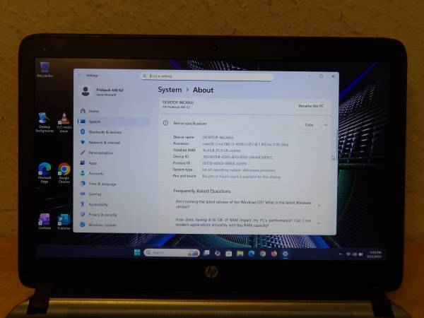 - Intel Core i3-4030U @ 1.90GHz CPU (gen 4)