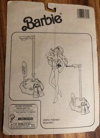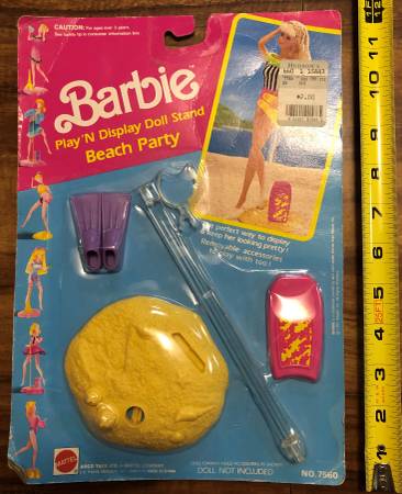 1991 Vintage Barbie Play'N Display Doll Stand Beach Party "The perfect way to display & keep her looking pretty!" "Removable accessories to play with too!" Made by Mattel / New in sealed...