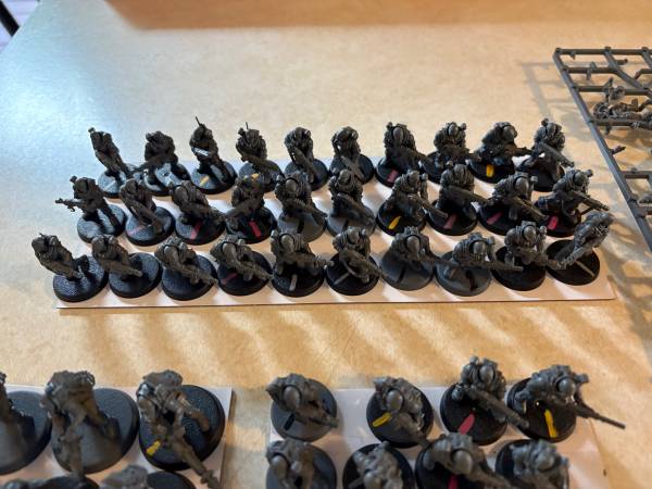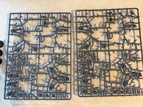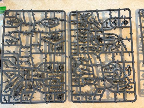 Large lot of Genestealer Cults, Neophyte Hybrids. 46 are built. There are another 16 to be built on sprues in two different layouts. Not sure which set they came from. MSRP for 6 sets of 10 is $360.