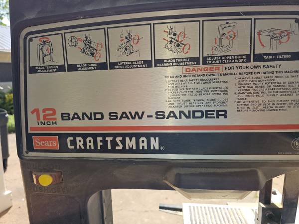 25HH 46 20-Jun JOHN CURTIS 25HH46 TOOL CRAFTSMAN 12" BANDSAW, WITH EXTENSION TABLE VGC P57388 LOCAL $299.00 LOCAL