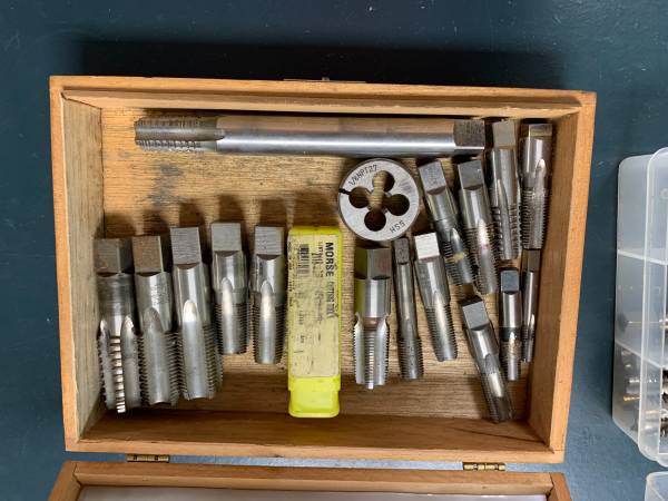 About 150 taps. Mostly new or barely used, all cleaned and sorted, boxes included. All SAE, with some pipe taps (in the wood box). Ranging from 6-32 up. Will split but prefer to sell the lot. There is well over $1500 worth here! Text 81zero-73zero-298zero. Mention "Taps".