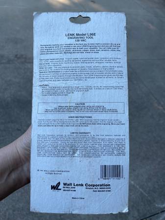 NEVER USED! Still in original packaging. Lenk L96E 7200 RPM Electric engraver pen, 120 VAC. Use for tools, sports equipment, bikes, camping gear, computers, TVs, cameras, patio furniture, grills,...