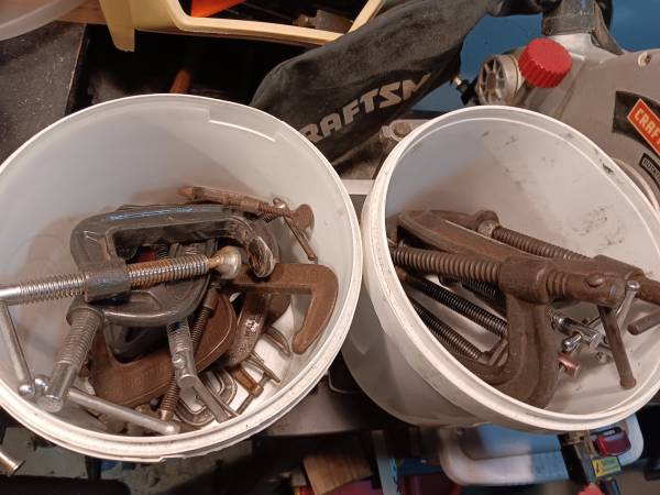 Large tool, hand tools Free standing drill press Free standing 9 inch band saw Engine hoist Painting & Spray painting supplies Shop vac Air compressor with hose Much more ON SALE SATURDAY 10/11...