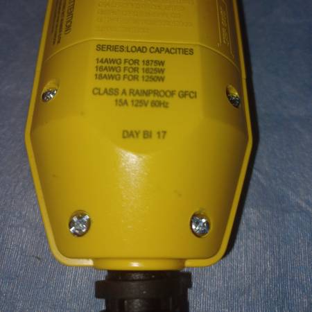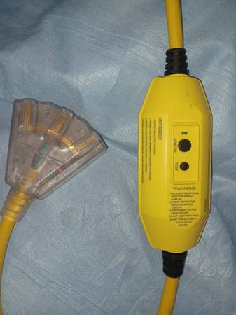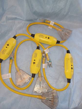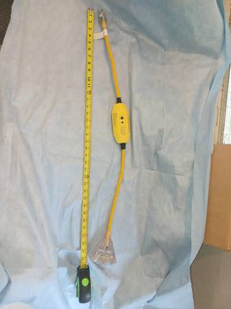 4 Foot GFCI lighted extension cord with 3 power outlets, 15A, 12/3.