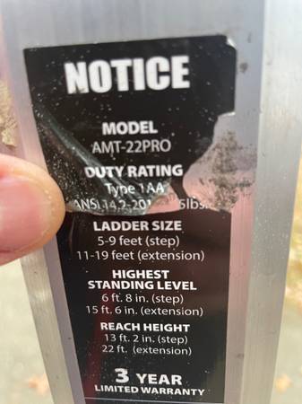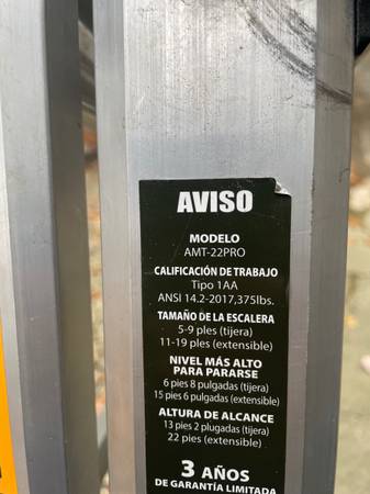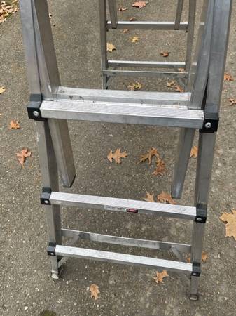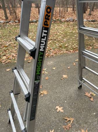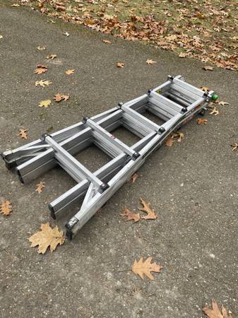 Aluminum ladder, folds, extends etc Multi ladder Rated 1AA 375lbs 22’ extension length 13’2” step ladder length Please email or leave your phone number Will delete when sold Thanks