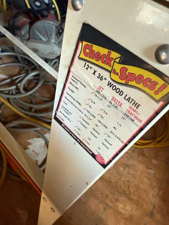 Jet wood lathe. 12”x36” Bought it but never had time to use it It’s practically new