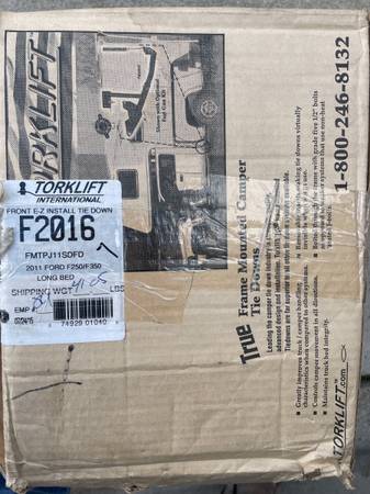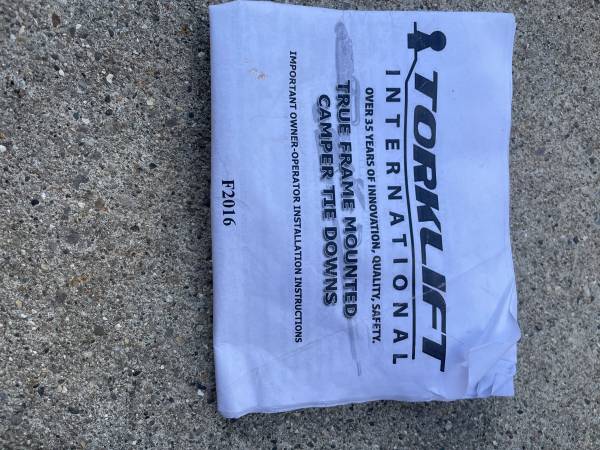 Torklift truck camper tie down with chains "only camper side" these slide into the truck mounted tie downs. Used with my F350 long bed. Model F2016