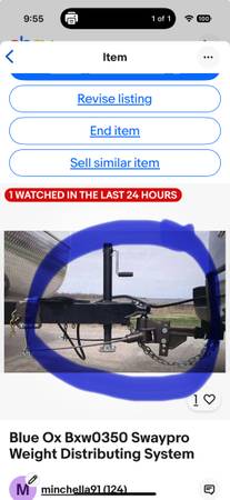 Blue Ox 0350 with sway bars. Used very little. Manages 8k lbs travel trailer or transport trailer.