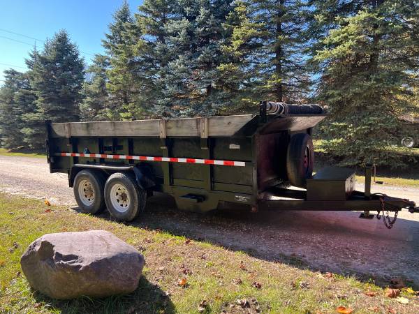 2011 Legend 14x7 14k dump trailer with title. Works perfect and well maintained, has rust but trailer is solid, new battery, rolling tarp, and d rings inside the bed. 248-41O-1504