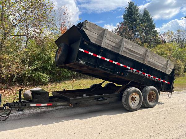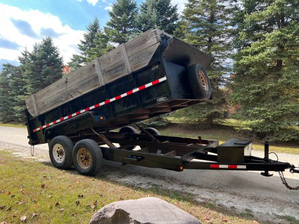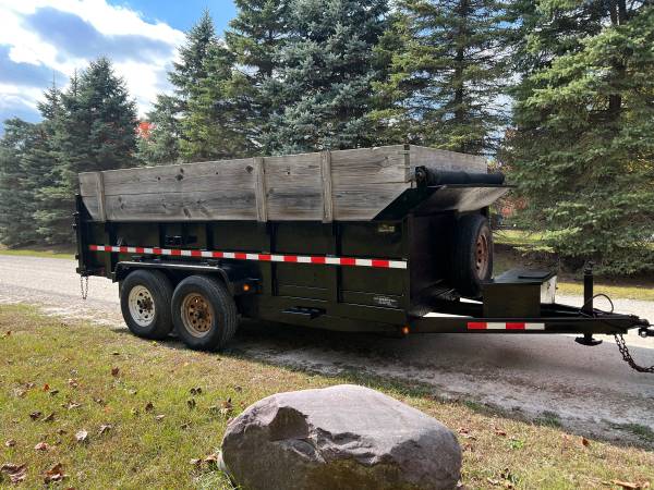 2014 Legend 14x7 14k dump trailer with title. Works perfect and well maintained. Newer $300 opium battery, dual cylinder lift, high sides, rolling tarp, and d rings inside the bed. 248-41O-1504
