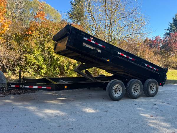 2021 PJ 16x7 Tri-Axle 21k dump trailer. Works like new, stored indoors, new $300 battery, 16ft with 3 7k axles, rolling tarp, ramps stored underneath, heavy duty scissor lift, ramps stored underneath, and d rings inside the bed. Call/Text 248-41O-1504