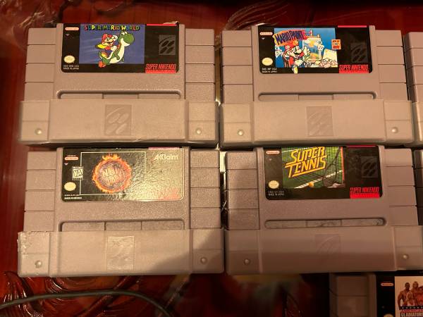 SNES Bundle SNES System with all cords SNES Controller SNES Mouse + Pad Super Mario World Mario Paint PGA Tour Golf NHLPA Hockey 93 NBA Jam Super Tennis NBA Jam Tournament Edition Madden ‘94...