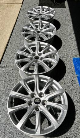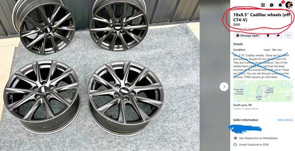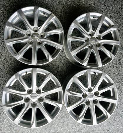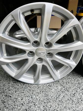 Four Excellent Condition rims / wheels. Off of a 2023 Cadillac XT4 OEM Set of 4 Wheels / Rims. Price includes all four Cadillac center caps and all four TPMS sensors. These wheels are in excellent condition. They will fit 2019 - 2023 XT4 for sure but will also fit other vehicles (Cadillac and other brands also) that use the 5x120 bolt pattern. I've included photos of the wheels without the center caps to give you an idea of what they would look like with without the Cadillac center caps. One wheel has a small scratch (not curb rash, just a scratch) besides that, they are like new. These wheels are similar to wheels used on the CT4-V series sedan. See picture of the CT4 V wheels. The finish and wheels are slightly different, but with paint, I think these would look very similar. Technical details below.