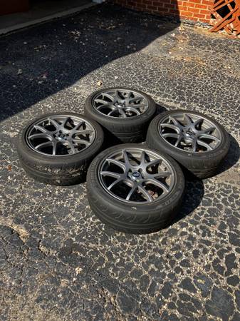 A great set of wheels and tires for track days. Should bolt right on to Scion FR-S, Subaru BRZ and Toyota GT86. Tires have 2 track days on them with plenty of wear left. Specs below: » Wheels: 4...