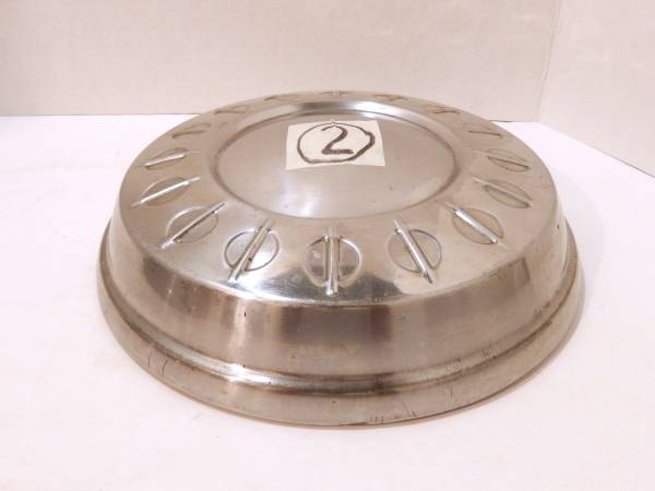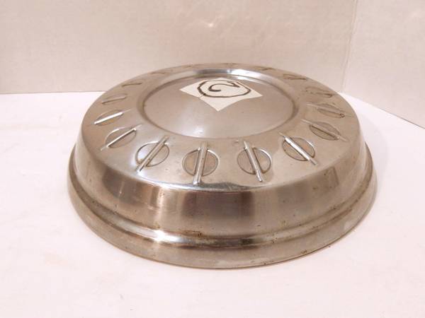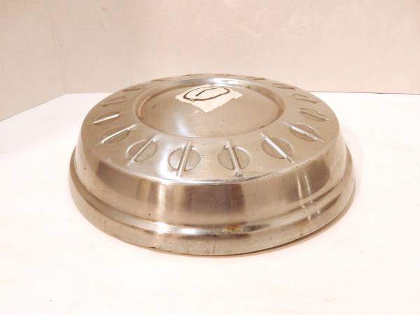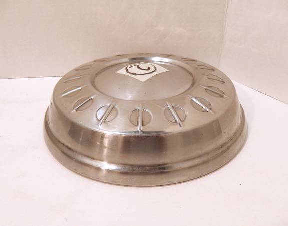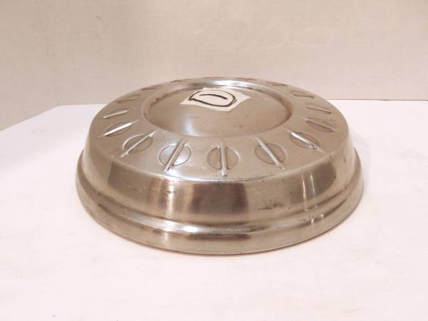 Here are three original 10" diameter dog dish style hub caps. The pair is for a 1961-62 Dodge Dart or Plymouth Valiant with 13" wheels. The single one is for a 1963-64 Plymouth Fury, Belvedere or Savoy with 14" wheels. All these stainless steel caps are in nice overall condition with just a couple of minor dents as shown in pics.