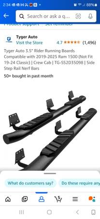 Used Tyger Auto 3.5" Rider Running Boards for 2019-2026 Ram crew cab - $100 (Troy)