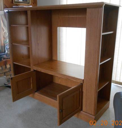 Bush Furniture AV34552 Heritage home entertainment center. The center has been disassembled so it can be carried in the back of an SUV. Original easy to reassemble instructions with all screws and...
