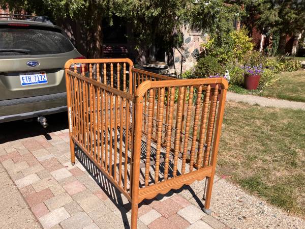 We have a fine wooden baby crib. One side slides up and down. The mattress setting have 4 optional heights. Accepts a standard size baby mattress- not included.