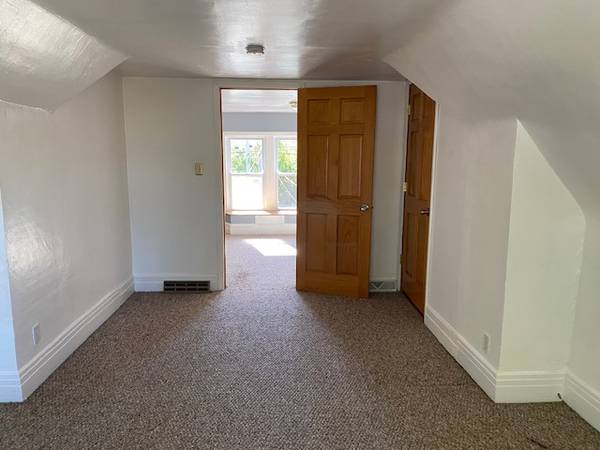 Two-Bedroom 1 Bath Townhouse Style Apartment - Lots of charm & character, Living room has 9' ceilings with crown molding, a large bay windown with transome window as well. Bedrooms are upstairs with one bedroom being a walk thru to the very large master bedroom with walk in closet. Home has a very small kitchen includes stove & refrigerator with door to the shared back yard. New carpet on the first floor. Home is within walking distance to downtown, shopping & restraunts. Off street parking available. Private basement with a washer (no dryer). Furnace & Hot water heater. Tenant responsible for all the utilities. 1-1/2 month security deposit ($1425) along with $950 first months rent required for move-in. No Pets.