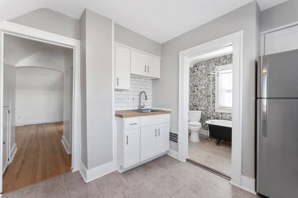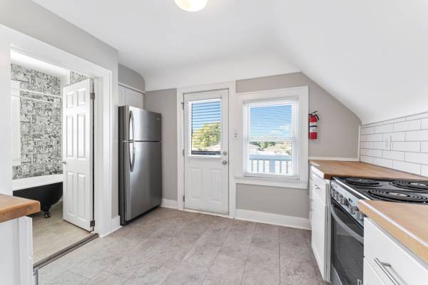 Come view this beautifully updated 1-bedroom apartment! This apartment is the upper of a 2-unit building. It features updated kitchen cupboards, hardwood flooring, a stunning bathroom, and a beautiful kitchen backsplash. This unit also has stainless steel appliances. It is located on a quiet street in Wyandotte, within short walking distance of shopping and restaurants. Pets welcome!