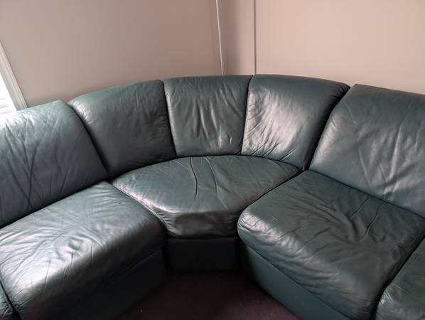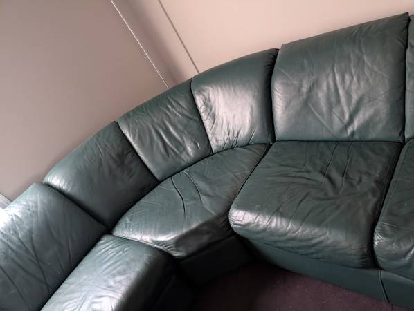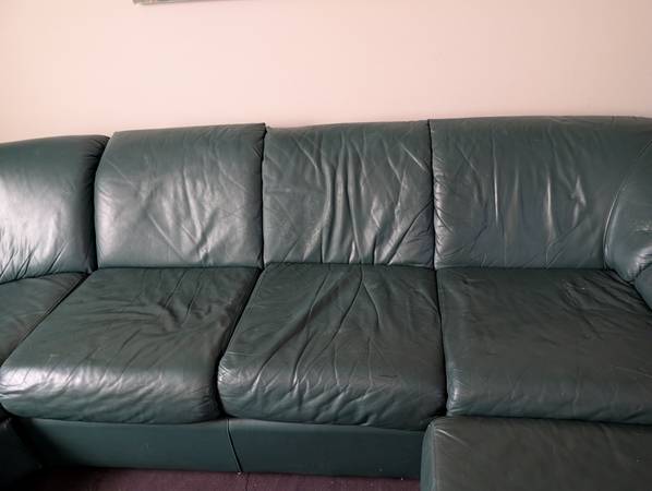 Three-Piece green leather sectional moving sale pick up today Smoke free Child free Pet free