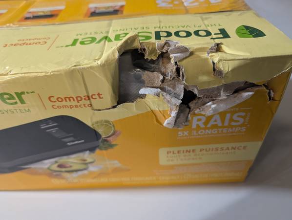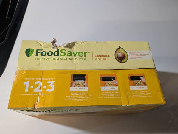 Selling a brand new FoodSaver Vacuum Sealer model VS1110. The unit itself is 100% new and unused — only the outer box was damaged during delivery. Everything inside is intact and in perfect condition.
