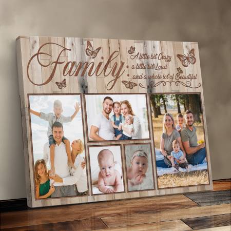There's beauty in the chaos of family life, and this canvas celebrates it perfectly. Featuring the heartfelt phrase "a little bit crazy, a little bit loud, and a whole lot of beautiful," it honors the joy, laughter, and love that make every family unique.